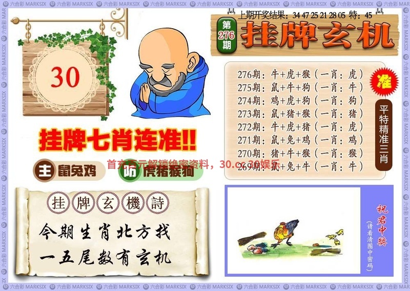 275期 | 鼠马 | 04合 | 3头单 | 鸡45 |